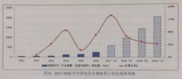 中关村储能产业技术联盟对2017-2020年中国及全球储能市场装机规模做了预测。