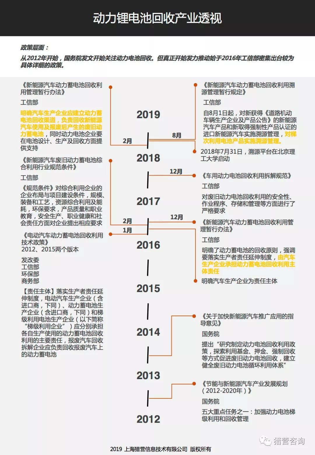 动力锂电池当中含有重金属及各种化学物质,属于有毒废物,如不进行正确的回收处理,将产生严重的污染问题。因此,从政府及社会层面,对动力电池的回收和利用越来越重视。而从经济层面看,动力电池当中含有的贵金属等物质,有较高的回收利用价值。因此,在大量动力电池面临退役的初期,如何顺应政策导向,提前布局动力电池回收产业,寻找其中的商业价值,是许多相关企业正在关心的战略或投资方向。