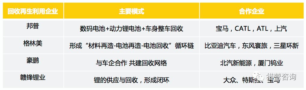 电池生产企业最了解动力电池构造,其具备动力电池拆解回收的技术优势,同时,回收动力电池和其本身的业务能产生协同。目前,中国最具代表性的动力电池生产企业宁德时代,其子公司邦普,已成为动力电池回收企业中的佼佼者。