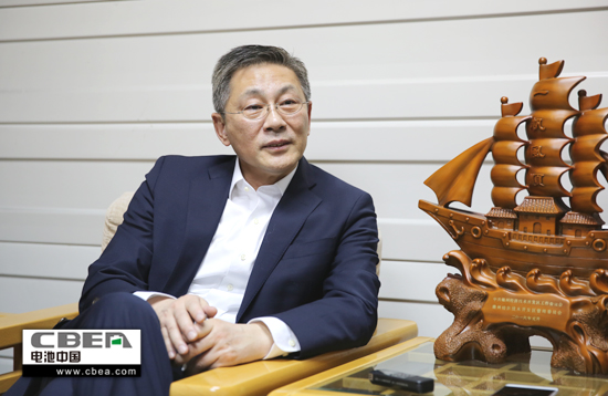 图为孚能科技董事长王瑀接受《电池中国网》记者采访