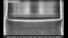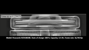 相关研究显示热失控一旦发生,热失控可能会在2s之内蔓延到整个18650电池,因此为了能够更好的观察整个热失控过程,需要每秒为18650电池拍摄1000张以上的X光照片,而电池的爆炸时间小于0.01s,这就需要更高的拍摄速度。为了满足这一苛刻的要求,Donal P. Finegan采用欧洲同步辐射实验室的设备对18650电池防爆阀的动作过程进行了拍摄,该设备曾经对保险丝的熔断起弧过程进行了拍摄,其分辨率达到了每秒钟百万次拍摄的级别。