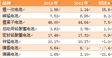 数据表明,2013年我国化学电源主要品种出口总量实现小幅增长,各类电池共出口291亿只,而2012年出口量为285亿只,同比增长2.1%。