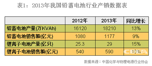 据中国化学与物理电源行业协会统计,2013年我国铅蓄电池的总产量为18210万KVAh,较2012年的16120万KVAh同比增长了13%,仅低于锂离子电池15%的同比增长率,成为2013年产量增速第二的电池产品。同时,铅蓄电池2013年度的销售收入高达1177亿元,远高于锂离子电池全年590亿元的销售额,成为电池行业名副其实的“老大”。