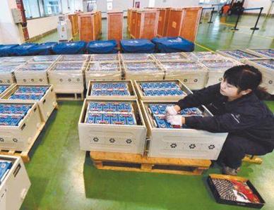 [摘要]近日,在中航锂电(洛阳)有限公司的生产流水线上,技术人员正在制造大容量锂离子电池。这些电池将被组装成储能电池柜。