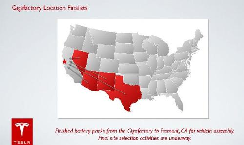 今年2月,特斯拉表示,将建立全球最大的锂离子电池厂,并在美国亚利桑那州、内达华州、新墨西哥州及德克萨斯州进行选址评估。特斯拉在3月份已经完成23亿美元(约合人民币144亿元)的融资,为筹建电池厂提供了资金支持。不过,马斯克拒绝透露电池厂选址细节。