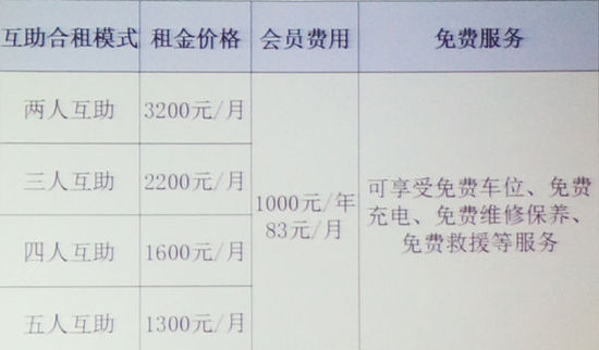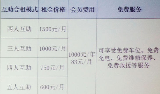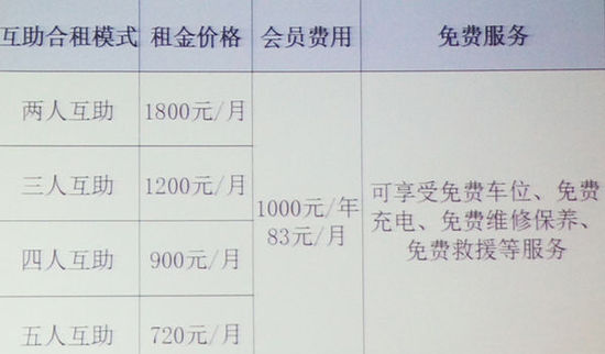 这项互助租车服务类似于时下热门的“拼车”。但与其不同的是车辆主要来自北汽的新能源车,用户需申请加入庞大互助租车俱乐部(EV HOME)会员。成为会员后,互助租车再根据用户提出的具体出行需求(如起点、终点、时间等)进行需求匹配,制定详细的组合路线。最后再由互助租车俱乐部提供车辆,安装电桩,选配车长,签订合同,收取会费和租金等。
