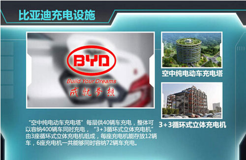 比亚迪在大力推广新能源汽车的同时,充电设施的不完善的问题就凸显出来了,现比亚迪对于充电配套的建设也已全面铺开。日前,网通社从比亚迪官方获悉:为解决充电问题,比亚迪现已推出“空中纯电动车充电塔”与“3+3循环式立体充电机” 等电动车充电解决方案。
