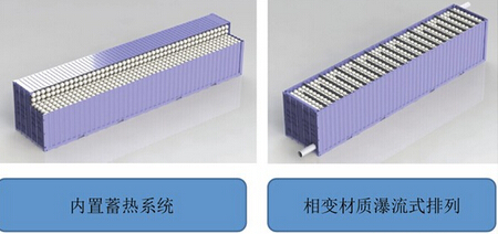 无数个储热球次序排列在集装箱式的储热箱体中,就形成了一种独特的集装箱式相变储热系统。目前,储热球的排列方式有内置式和相变瀑流式两种,可根据项目场地的大小选择不同的排列方式,两种储热箱在制作费用方面会有所差异。(见图2)