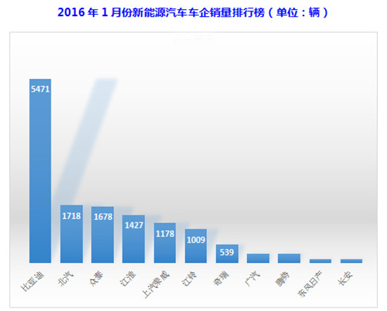 从已知数据看来,2016年1月份新能源汽车的销量如下: