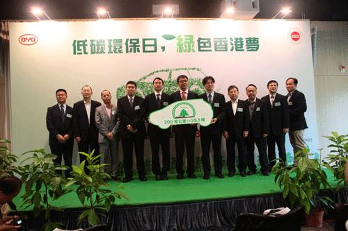 截止目前,香港运营的45台纯电动出租车,总运营里程已经达到224万公里,单车最高里程已经高达13万公里。换算后相当于种植283棵树木(按照200万公里换算)的绿化效果。香港的士小巴商总会与比亚迪最终决定,联合向香港环境保护协会捐赠树苗,将减排效果二次回馈给香港。 最终,在到场的各界环保人士的共同见证下,双方领导共同将283棵树苗,亲手捐给香港环境保护协会。