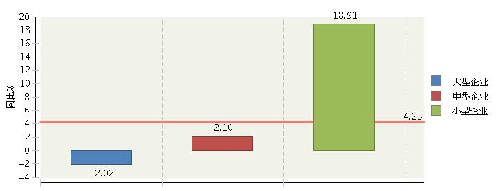 从企业规模看,小型企业增长速度加快。大型企业完成累计主营业务收入810.75亿元(占41.05%),同比增长-2.02%;中型企业完成累计主营业务收入634.63亿元(占32.13%),同比增长2.1%;小型企业完成累计主营业务收入529.76亿元(占26.82%),同比增长18.91%。(参见图5、图6)