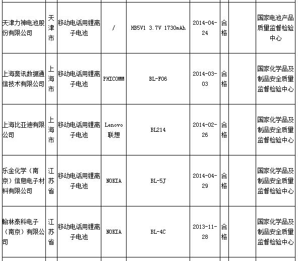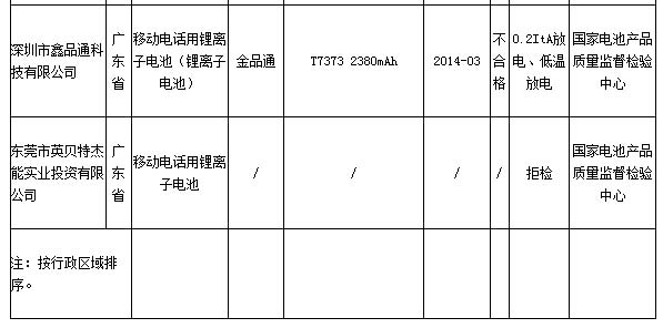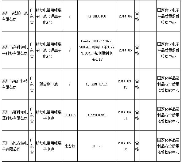 国家质检总局17日公布的2014年第2季度移动电话用锂离子电池产品质量国家监督抽查结果显示,不合格产品检出率为10.7%,不合格产品检出率同比上次抽查高出了2.1个百分点。