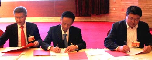 图:蒋卫平(左)、戴扬(中)、刘玉军(右)签约现场