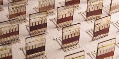 来自英国舍费尔德大学的一个团队开发了一种喷漆型的电池,这种电池即廉价又实用。原理是将钙钛矿覆盖在目标物上,钙钛矿是一种钙钛氧化矿,类似水晶结构、有吸光特性的有机金属,主要成分为钛酯钙。这种材料和有机太阳能电池一样并不昂贵,但它的吸光率能几乎和硅一致,目前硅不适合拿来做太阳能电池。