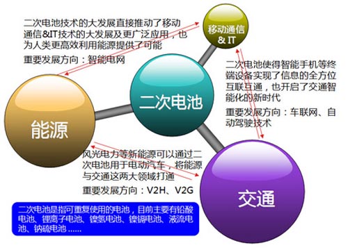图1:以锂离子电池为代表的二次电池技术的大发展,使移动通信&IT、交通、能源这三大对人类文明进步至关重要的关键领域,相互之间彻底打通成为了可能