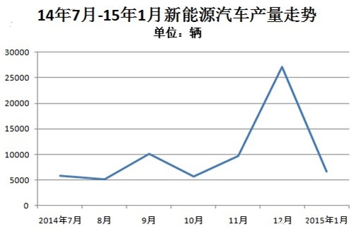 工信部2月4日发布了2015年1月份新能源汽车产量。根据机动车整车出厂合格证统计,2015年1月,我国新能源汽车生产6599辆,同比增长近5倍。 虽然环比2014年12月2.7万辆的产量回落明显,但这与前两年中国新能源汽车年底冲高、年初回落的走势基本一致,在补贴退坡的头一个月产量还有如此增 长,也给2015年开了一个好头。