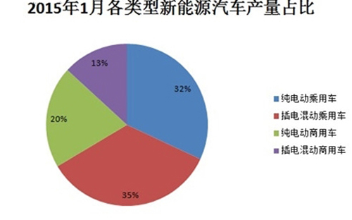 1月的产量中,纯电动乘用车生产2108辆,同比增长近5倍,插电式混合动力乘用车生产2278辆,同比增长近7倍;纯电动商用车生产1343辆,同比增 长6倍,插电式混合动力商用车生产870辆,同比增长近2倍。列入《免征车辆购置税的新能源汽车车型目录》前三批的新能源汽车生产5664辆,占1月产量 的86%。