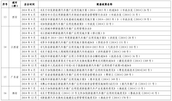 新能源汽车推广应用示范城市(群)配套政策出台进展情况