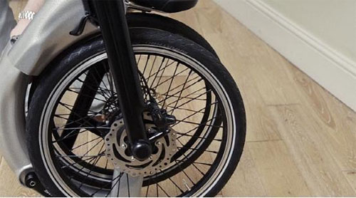 最后,这款便携的折叠电动自行车重量仅为15千克,从完全展开到折叠起来只需要四个步骤,折叠好厚可以将车身夹在两个20英寸车轮之间。