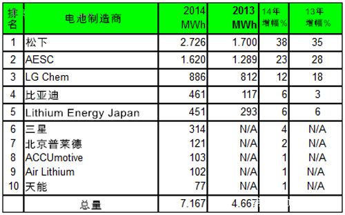 2014全球电池生产商前十强 比亚迪普莱德天能入围