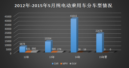4、2012年-2015年5月新能源乘用车分车型销售情况(单位:台)