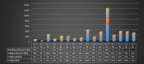 5、2015年前4月新能源商用车销售情况(单位:台)