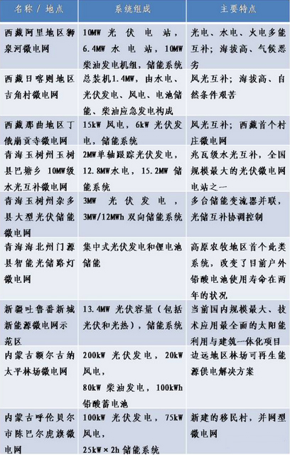注:表中除陈巴尔虎旗微电网为并网型微电网外,其余均为独立型微电网。