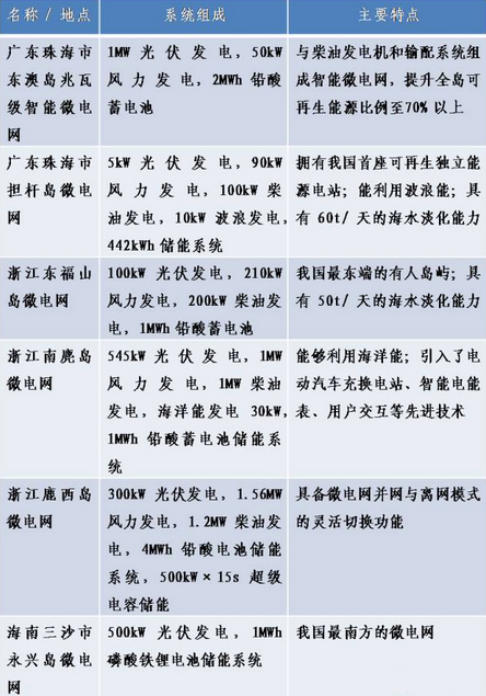 注:表中除浙江鹿西岛微电网为并网型微电网外,其余均为独立型微电网。